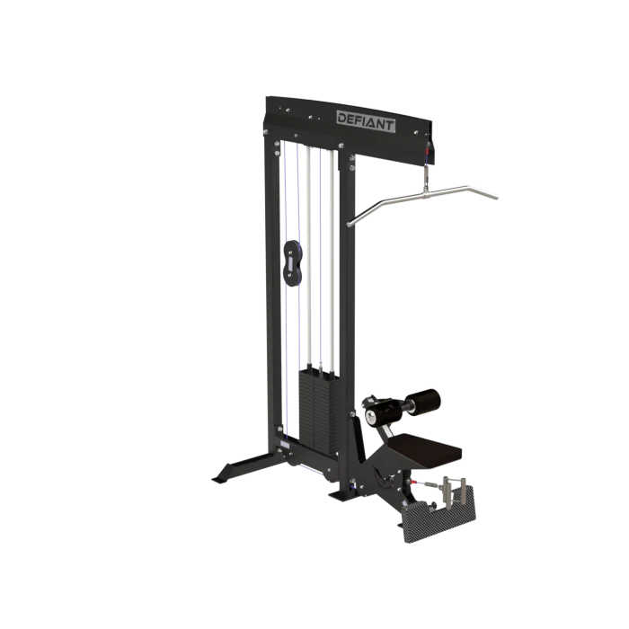 The Defiant Strength Lat Pulldown / Low Row Combo | TKO (DS-925) is a versatile, dual-function strength training machine that targets upper body muscles for comprehensive back and arm development. Featuring a durable 3” x 3” steel structure, this combo machine offers a smooth cable-driven system for lat pulldown and low row exercises. Ergonomically designed with an adjustable thigh pad for comfort and proper alignment, it ensures an optimal user experience for individuals of all fitness levels. With premium components built for longevity, this commercial-grade machine delivers a balanced, full-range workout to enhance strength and performance.
