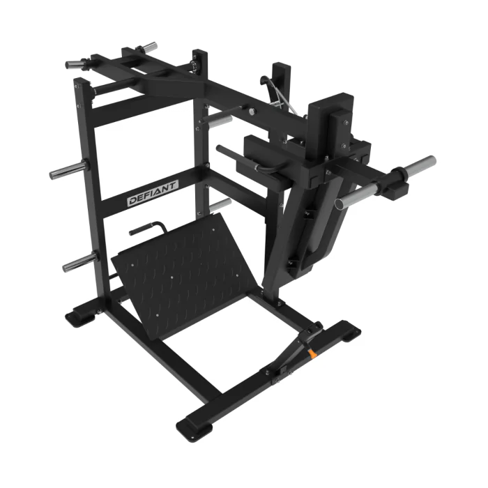 With a compact footprint measuring 93.15″ L x 58.07″ W x 70.47″ H and weighing 463 lbs., the TKO DS-1021 Pendulum Squat Machine is ideal for home gyms, commercial fitness centers, and military installations. Its innovative front-pivoting handgrip allows for effortless weight racking and unracking, ensuring ease of use. This heavy-duty, iso-lateral squat machine is built to withstand rigorous use, making it a reliable choice for fitness professionals and enthusiasts alike.
