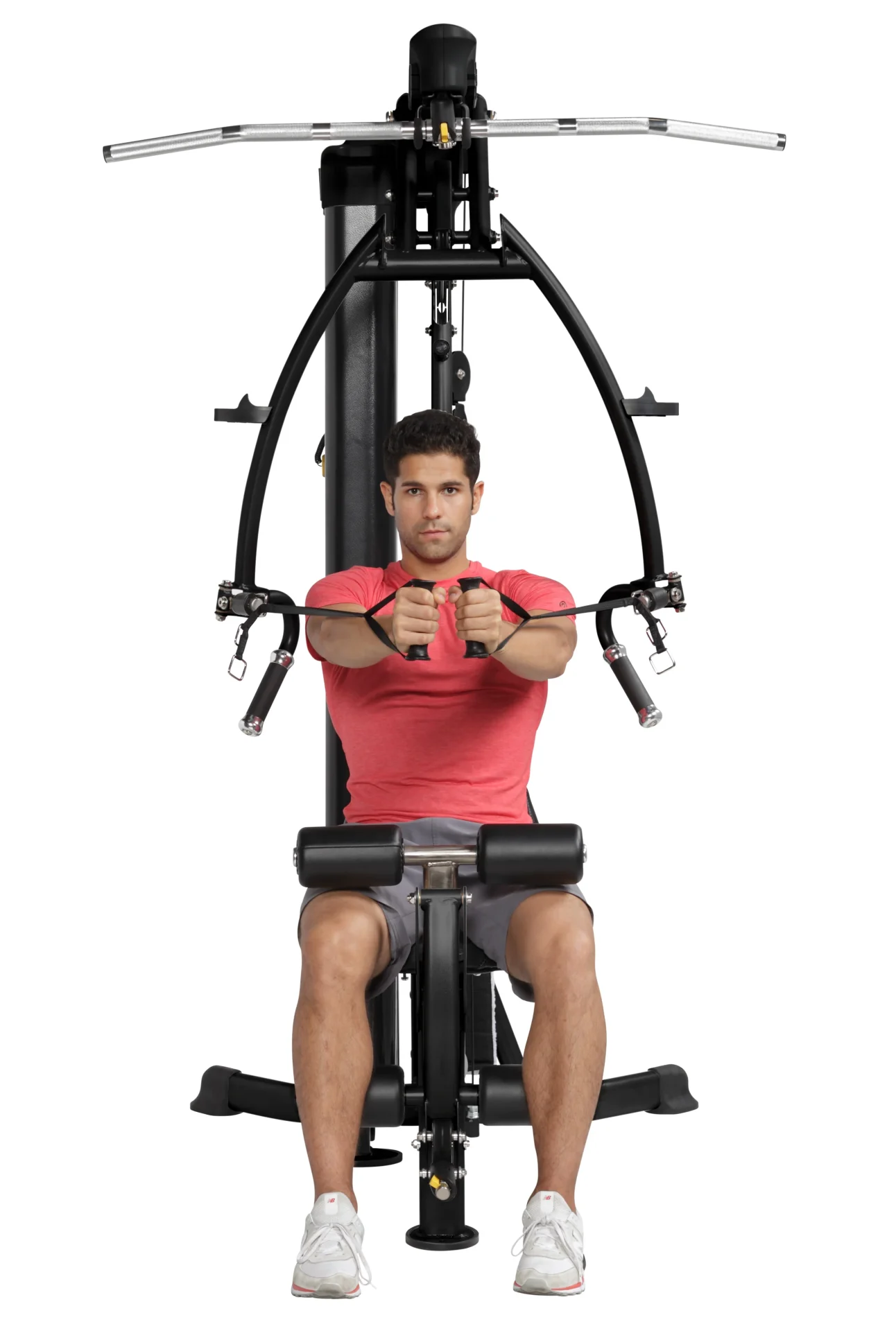 - Compact multi-gym provides an uncompromised range of exercises commonly found in health clubs