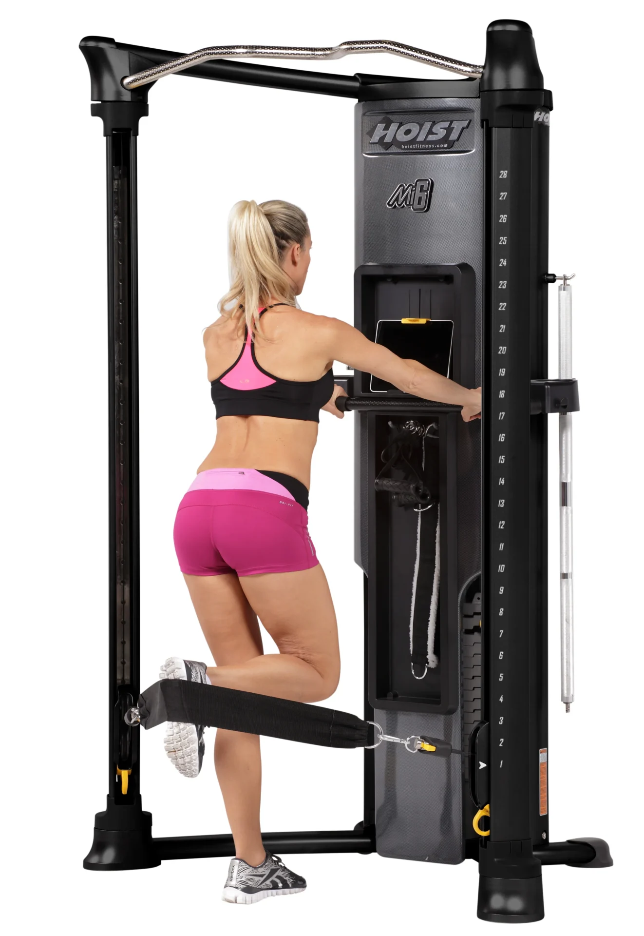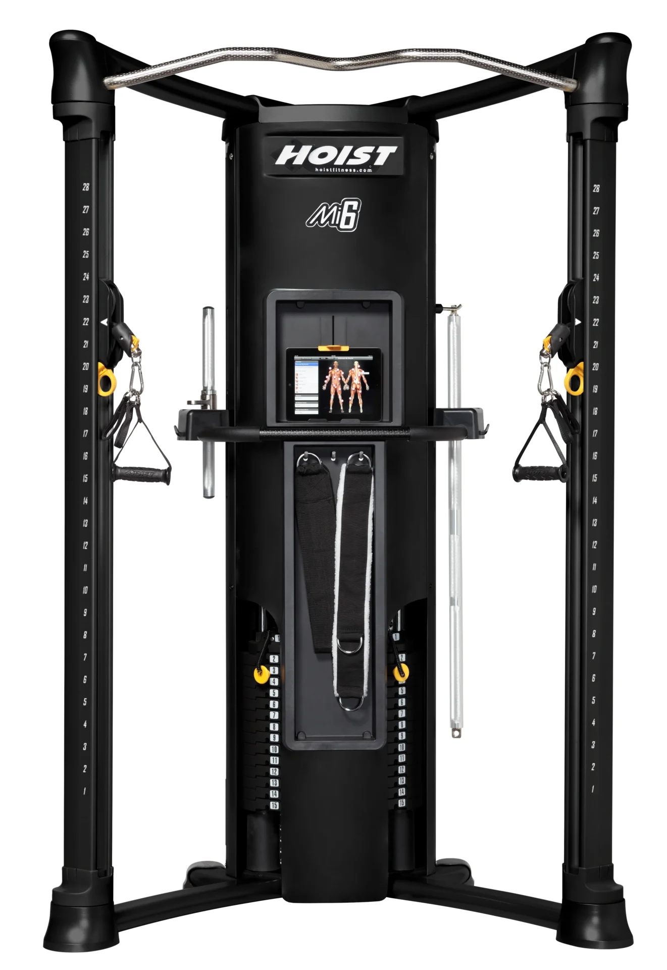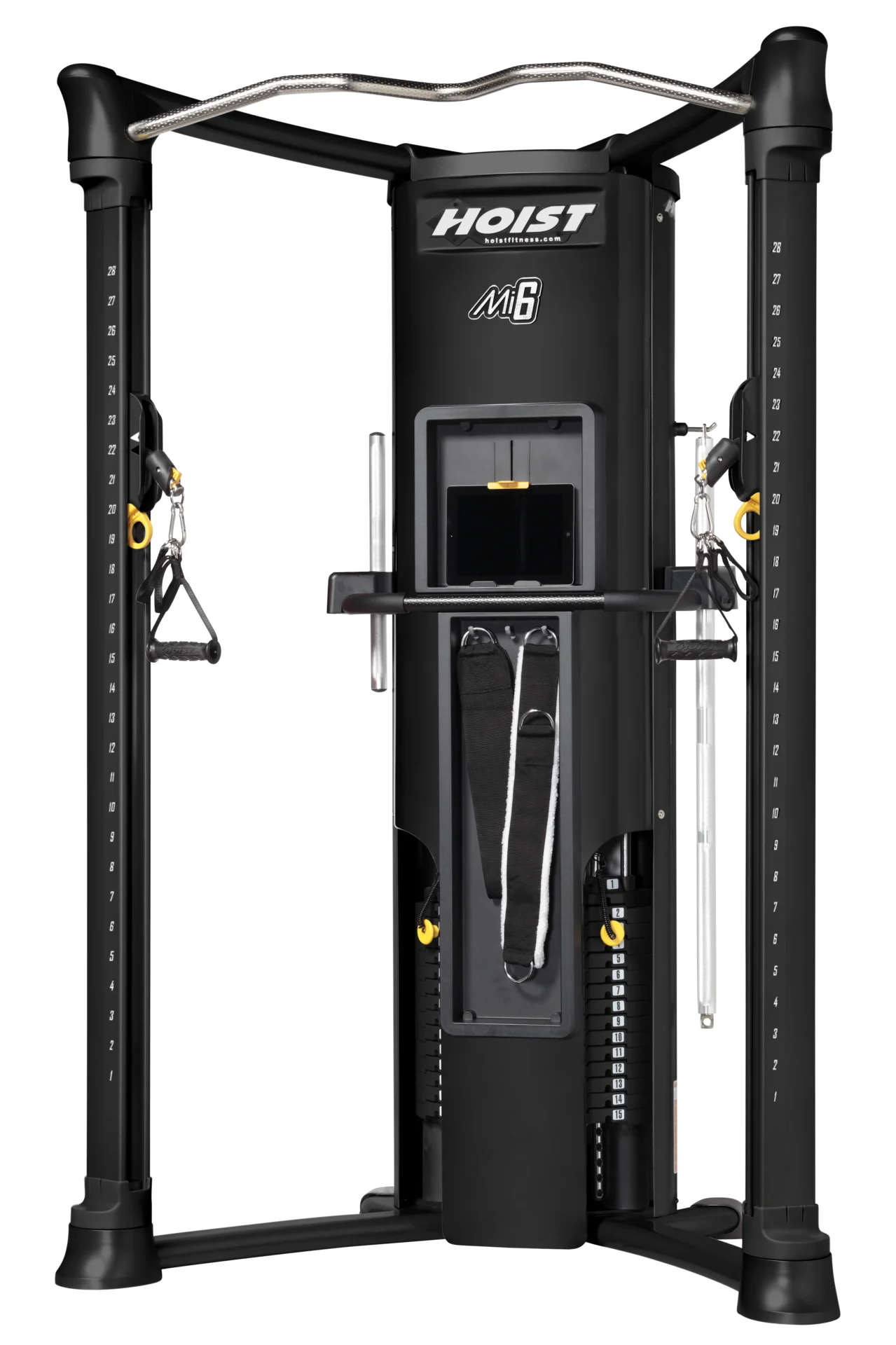 The unique and stylish HOIST® Mi6 Functional Trainer is a personal pulley gym that is engineered with the innovative excellence and aesthetic appeal that the fitness industry has come to expect from HOIST. This gym provides a complete range of functional training exercises designed to obtain maximum results and achieve a strong and versatile body. The Mi6 is engineered to build multiple muscle groups through smooth, rhythmic, and continuous movements that support the body as it moves through life. Learn more about the features and specs below.