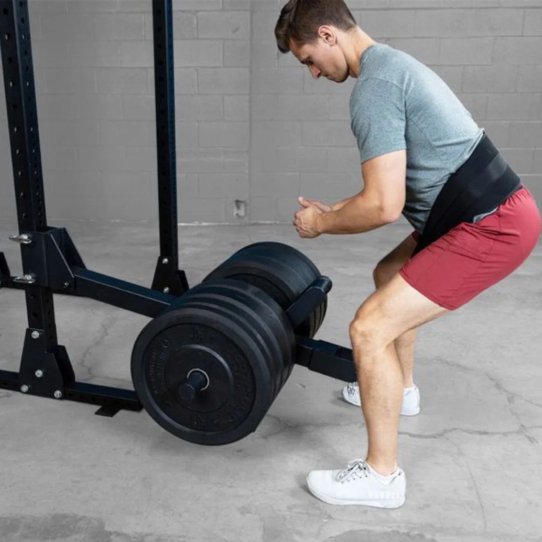 The Body-Solid Pro Clubline SPRBSA Belt Squat Attachment allows users to squat heavy without putting compression stress on the back and shoulders. Save money and floor space by adding this attachment to a rack instead of purchasing a standalone belt squat machine. The SPRBSA easily attaches to the uprights of Body-Solid’s SPR1000 Power Rack and SPR500 Half Rack. The SPRBSA features 15.25″ weight horns designed to fit Olympic weight plates and has a robust weight capacity of 1000 lbs.