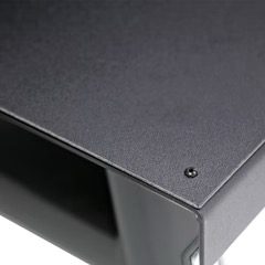 Black metal corner with visible screw detail.