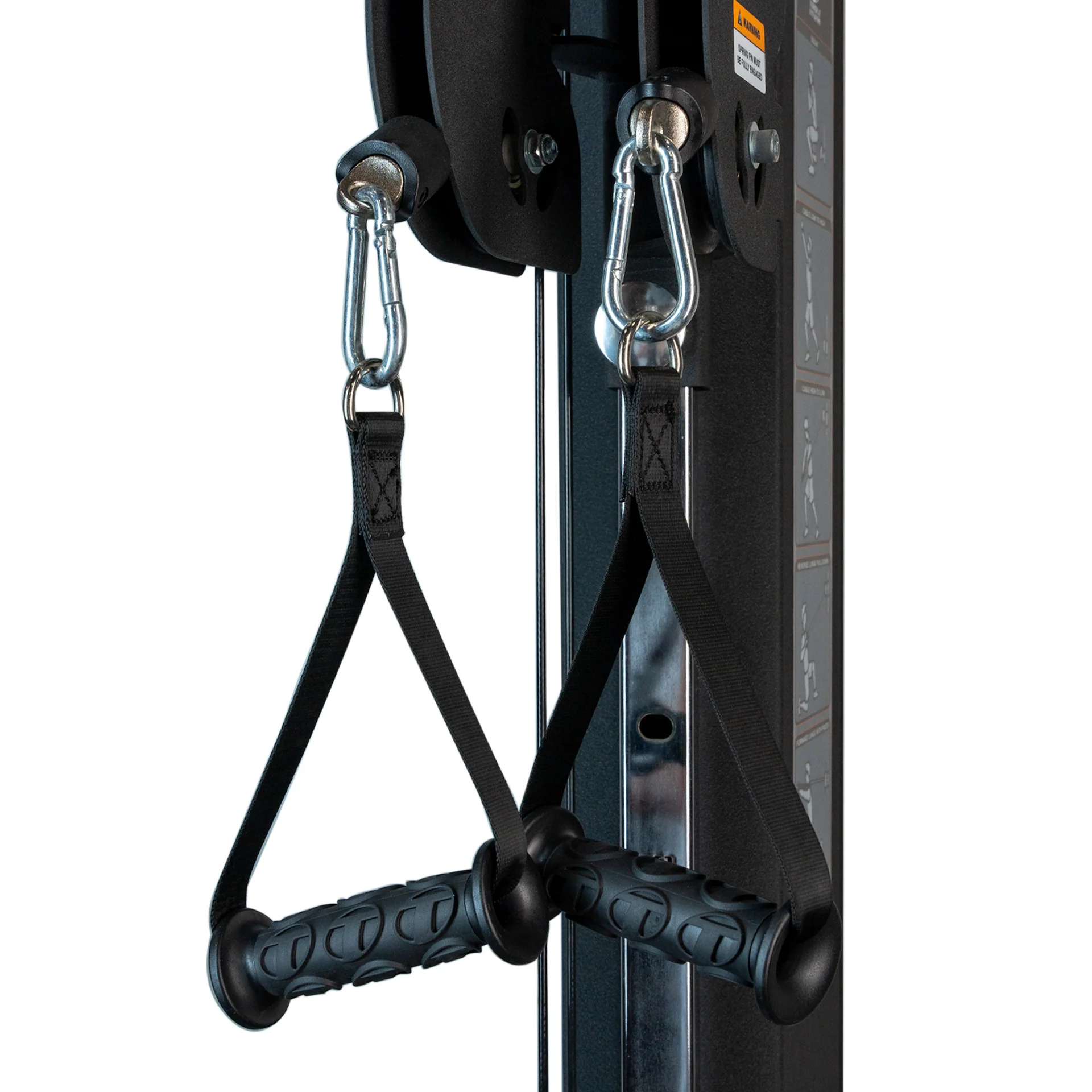 This module includes two brackets for mounting and fully enclosed steel weight shrouds with instructional placards. Additionally, it includes a 190 lb (86 kg) solid steel weight stack with 1:2 ratio and pin access on both sides.